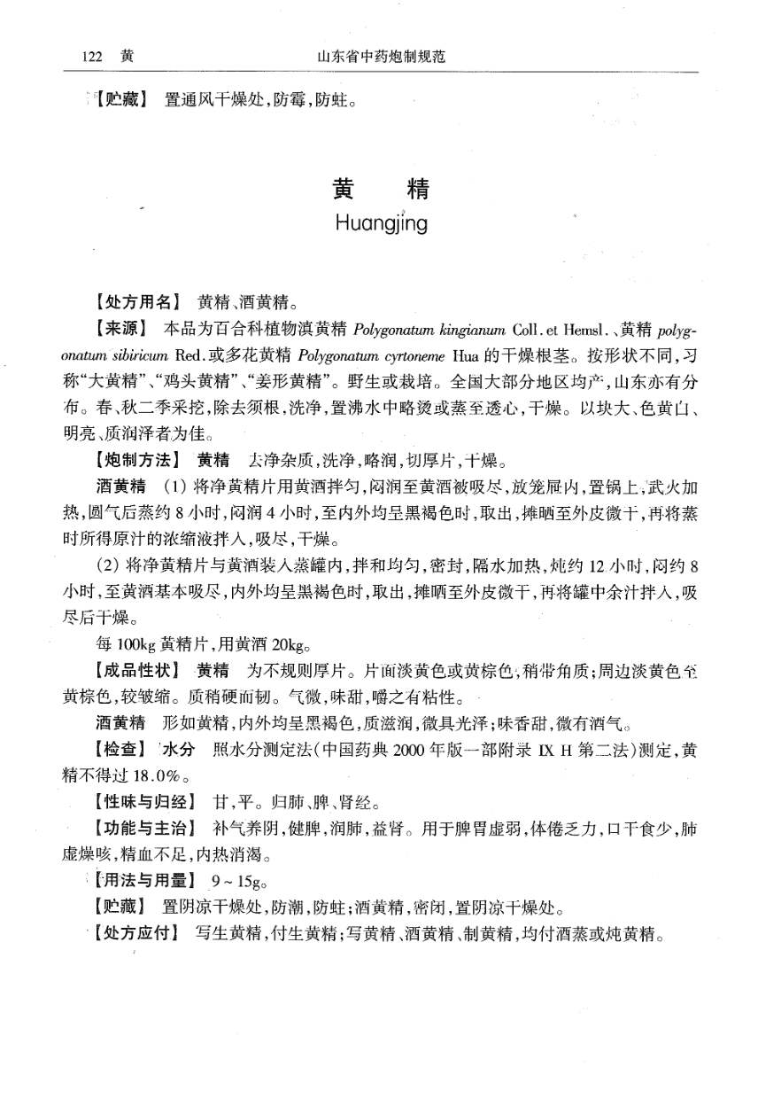 山东省中药炮制规范 > 黄精