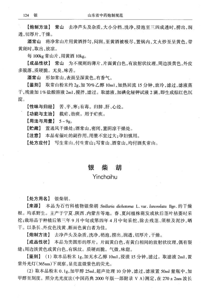 山东省中药炮制规范 > 常山