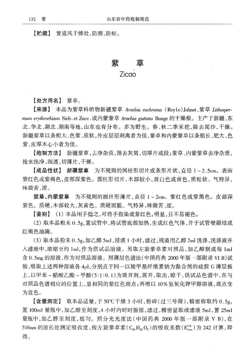 山东省中药炮制规范 > 紫草