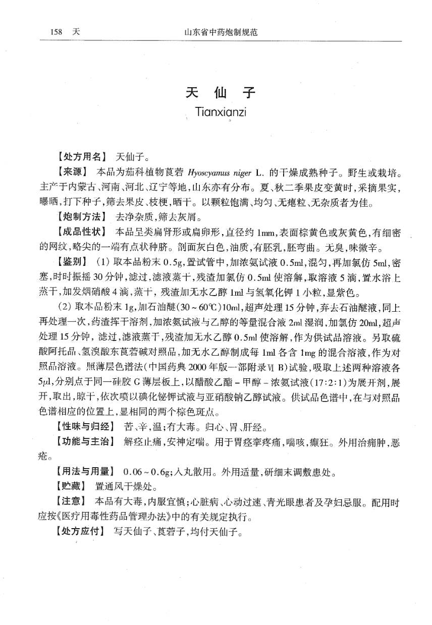 山东省中药炮制规范 > 天仙子