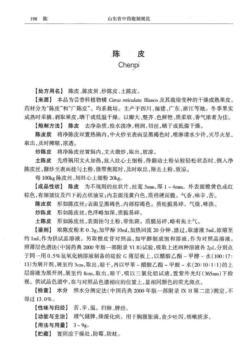 山东省中药炮制规范 > 陈皮
