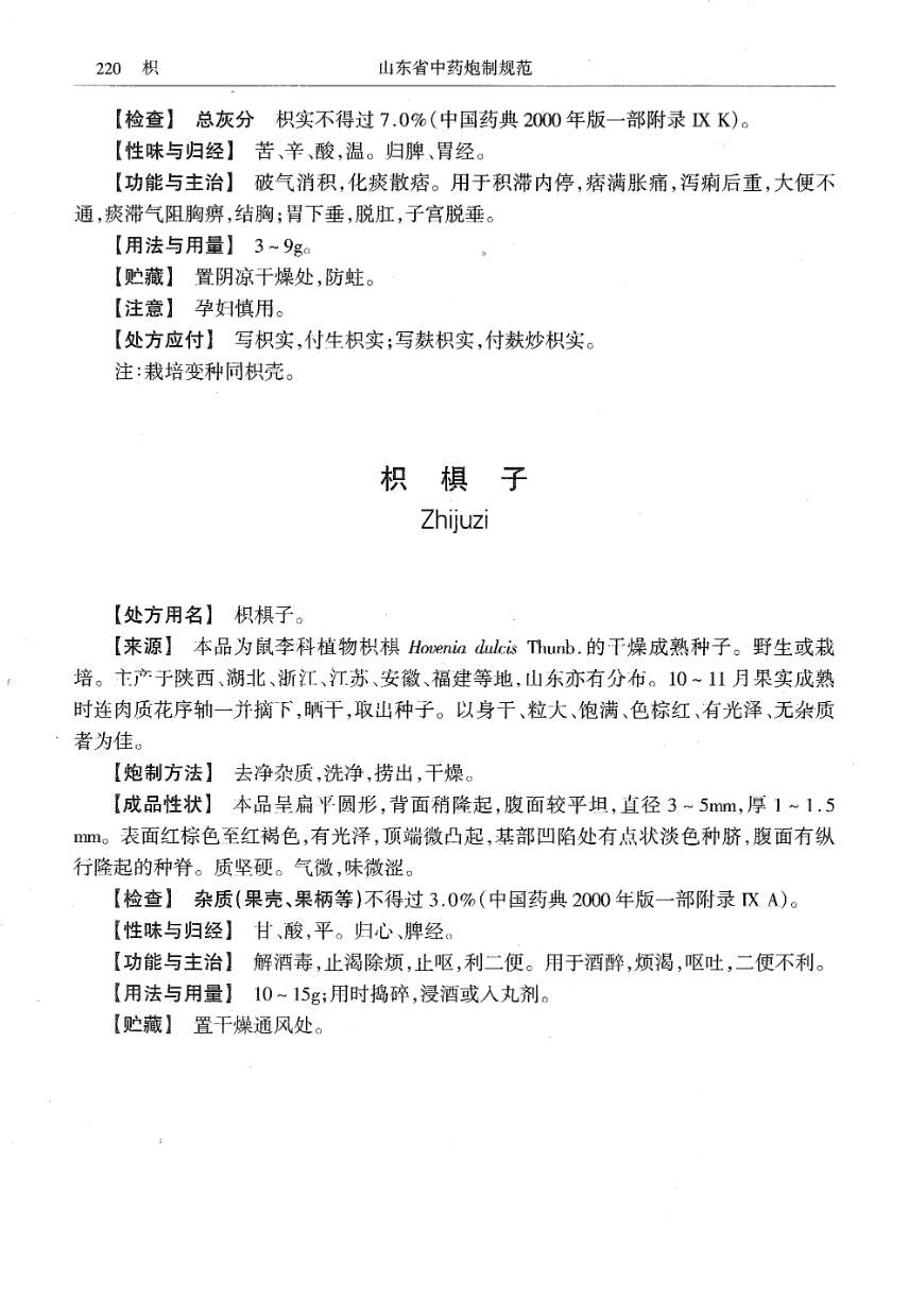 (山东省中药炮制规范 - 2002年版)
