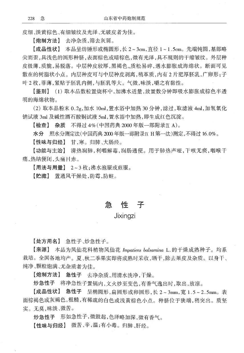 (山东省中药炮制规范 - 2002年版)
