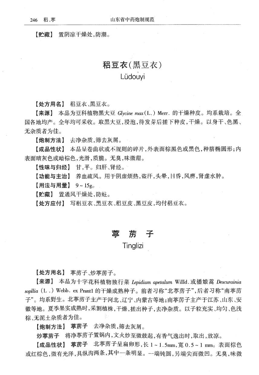 山东省中药炮制规范 > 葶苈子
