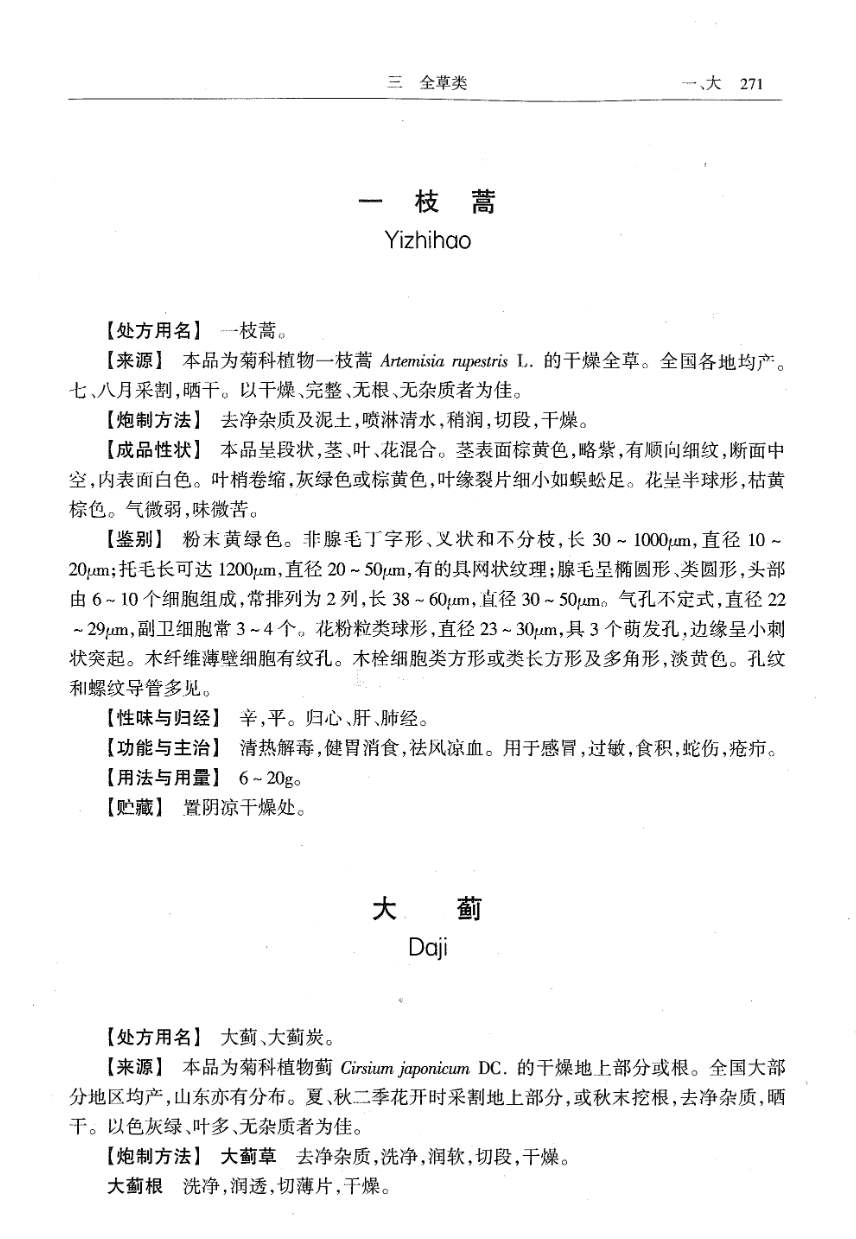 山东省中药炮制规范 > 一枝蒿