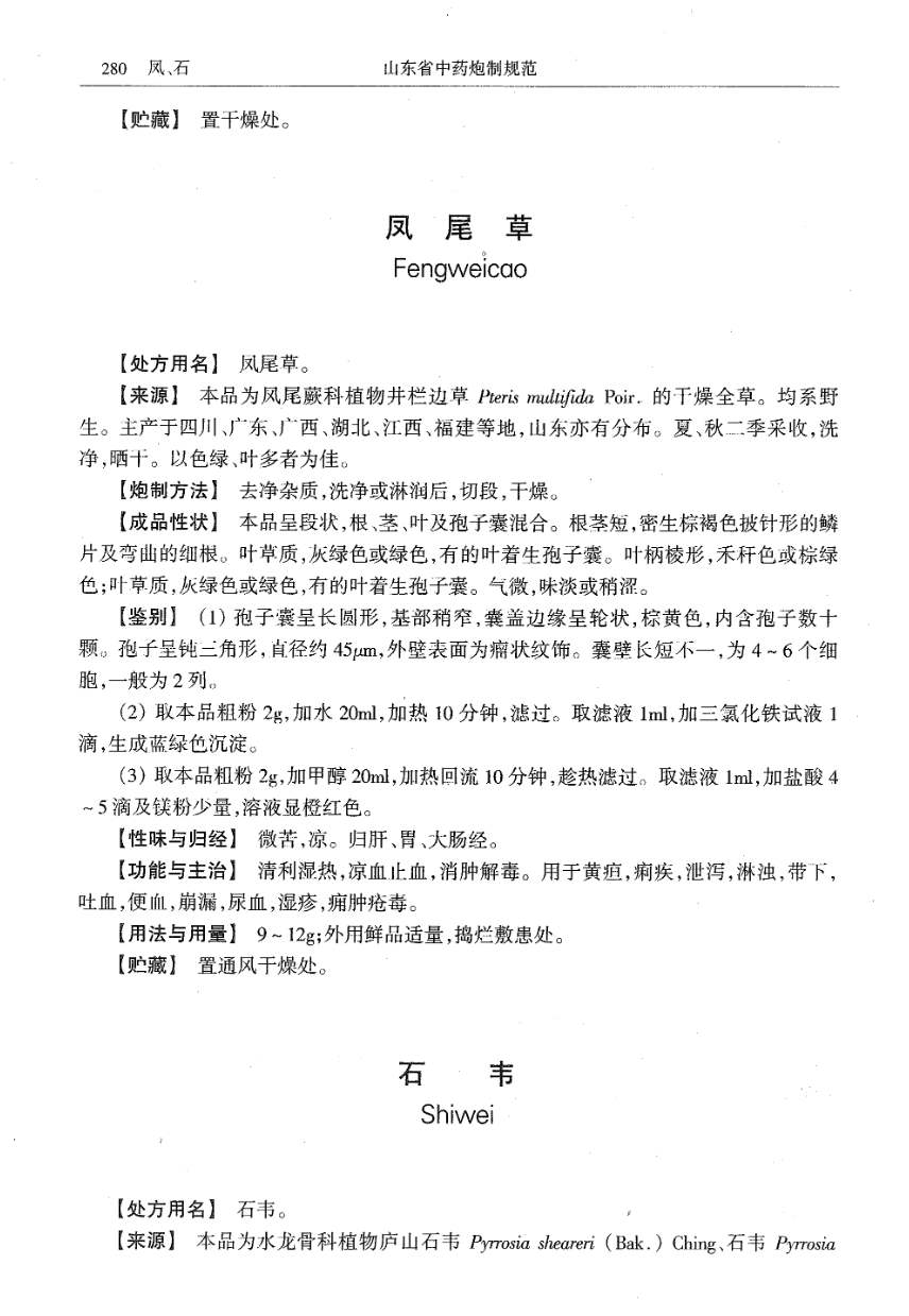 山东省中药炮制规范 > 石韦