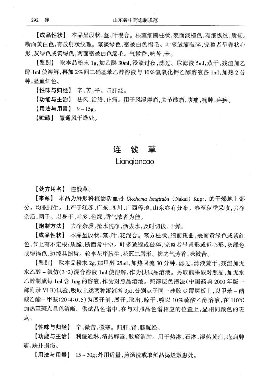 山东省中药炮制规范 > 连钱草