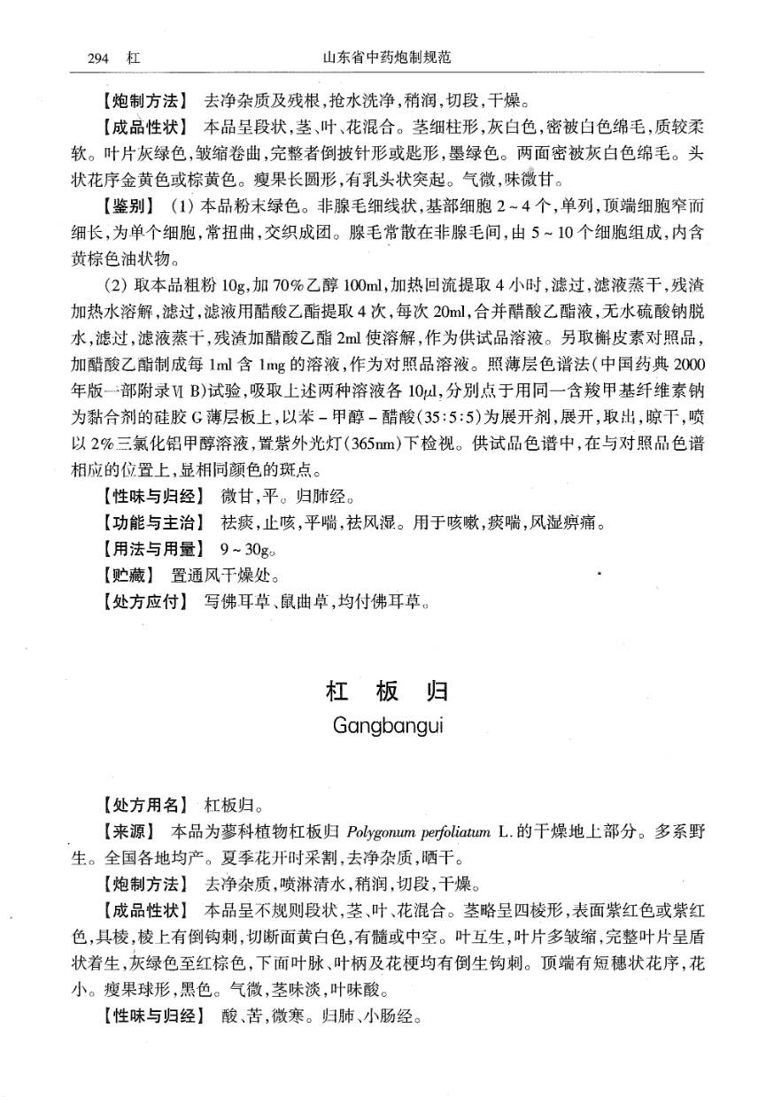 山东省中药炮制规范 > 杠板归