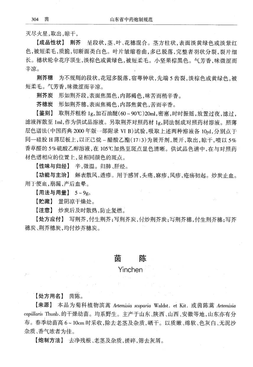 山东省中药炮制规范 > 荆芥