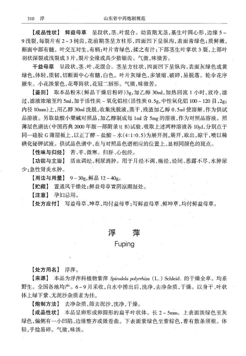 山东省中药炮制规范 > 益母草