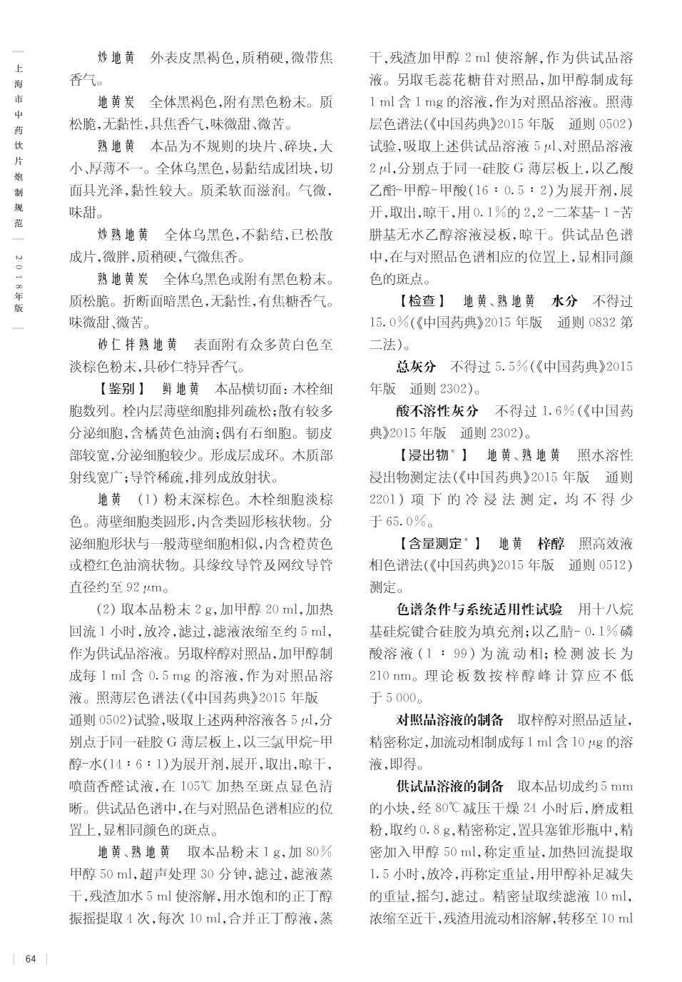 上海市中药饮片炮制规范 > 地黄