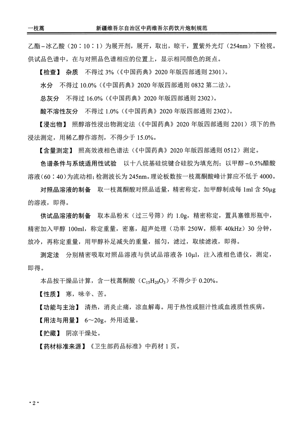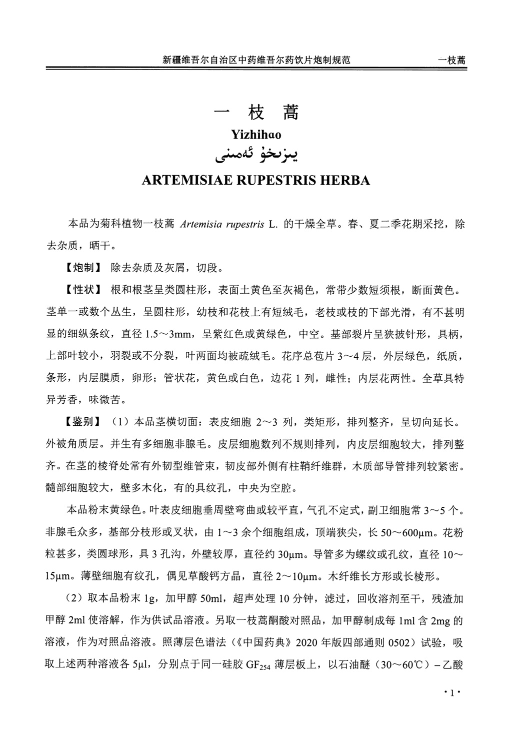 新疆中药维吾尔药饮片炮制规范(2020年版) > 一枝蒿