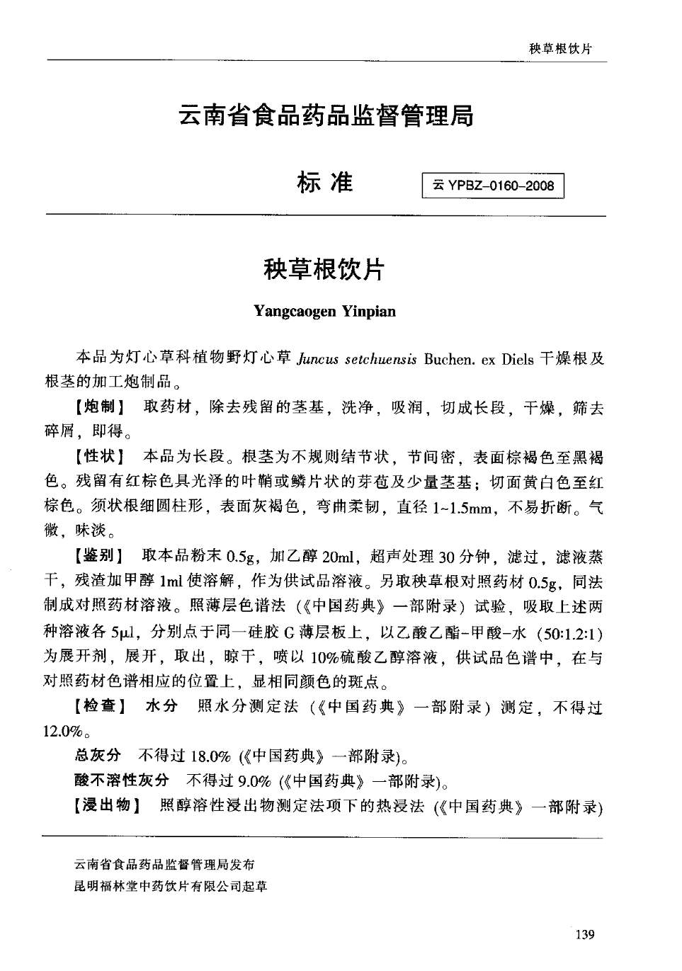云南省中药饮片标准(2005年版) > 秧草根饮片
